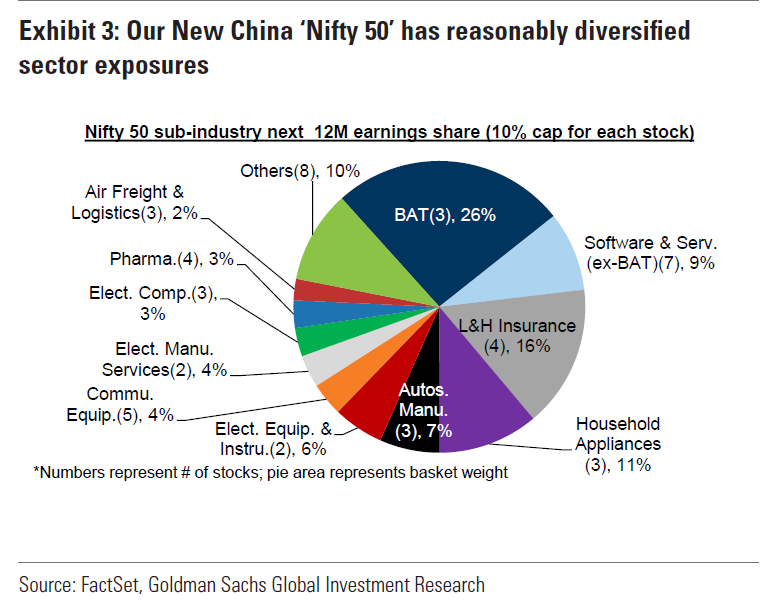 Recently, for researching China’s economy, Goldman Sachs picked up 50 stocks from 18 sub-industries which are called Nifty 50.